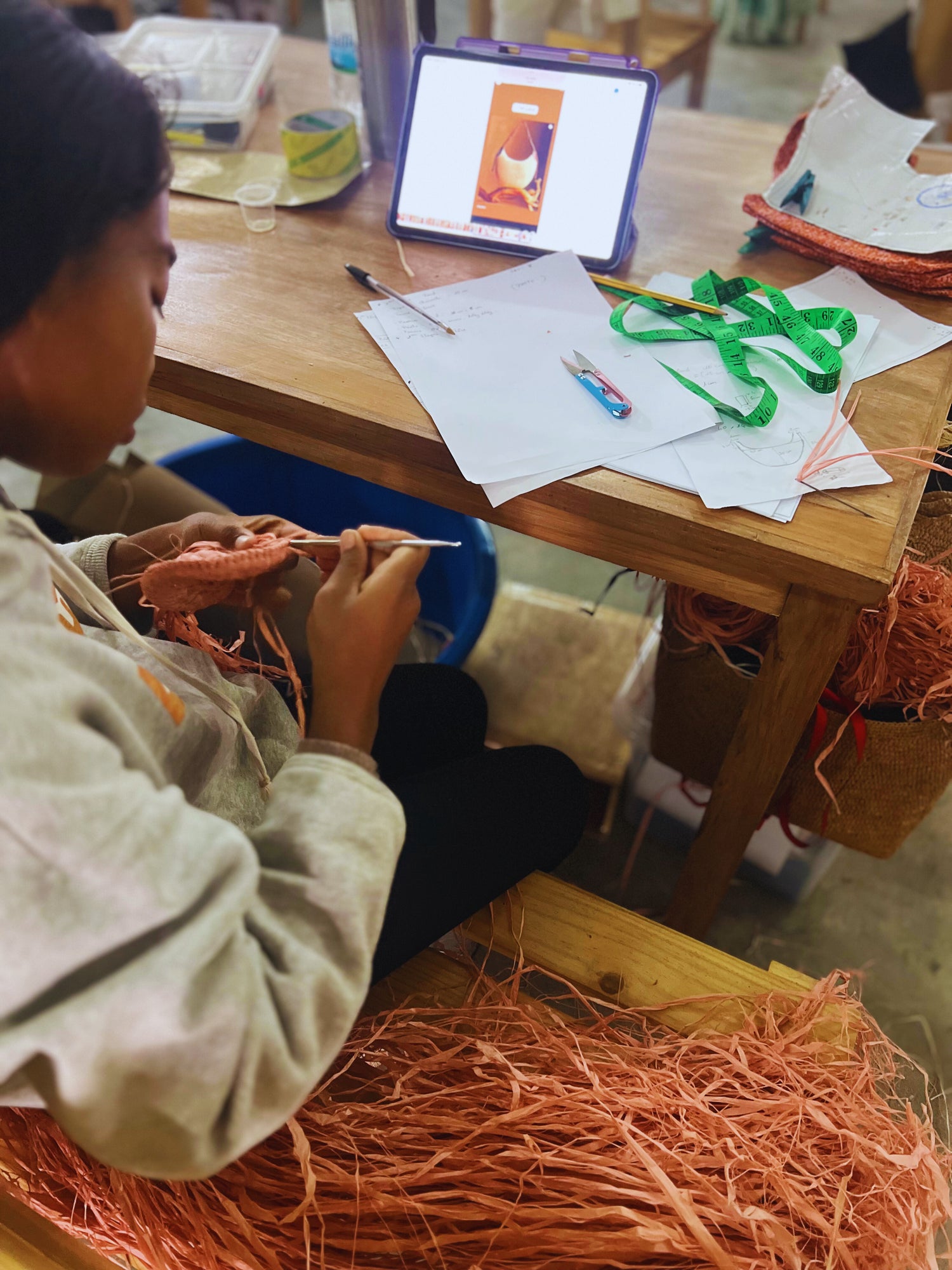 Autour d’eux, une équipe de modélistes, brodeurs et artisans du raphia, composée de professionnels expérimentés et de jeunes talents formés en interne : un équilibre harmonieux entre expertise et créativité