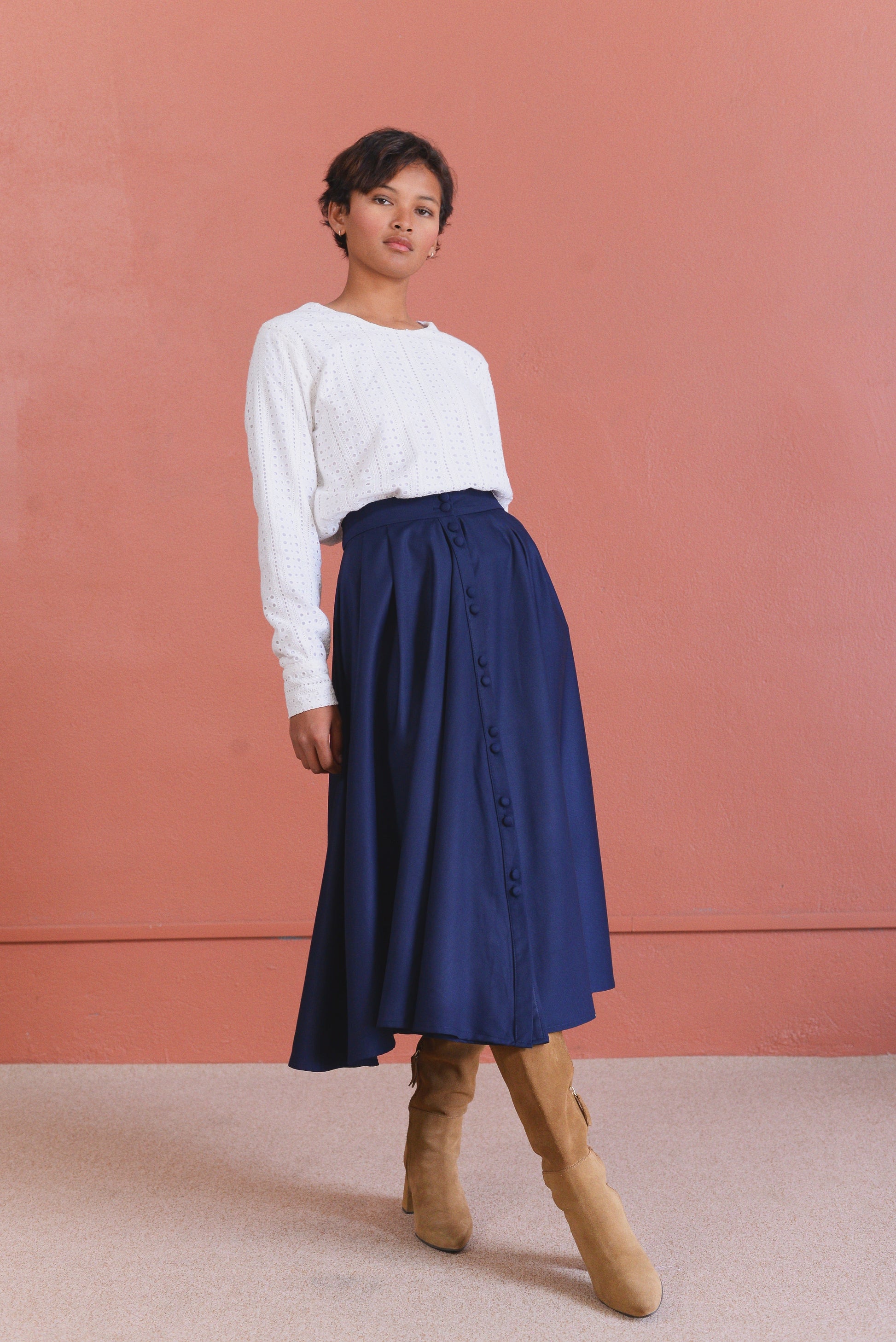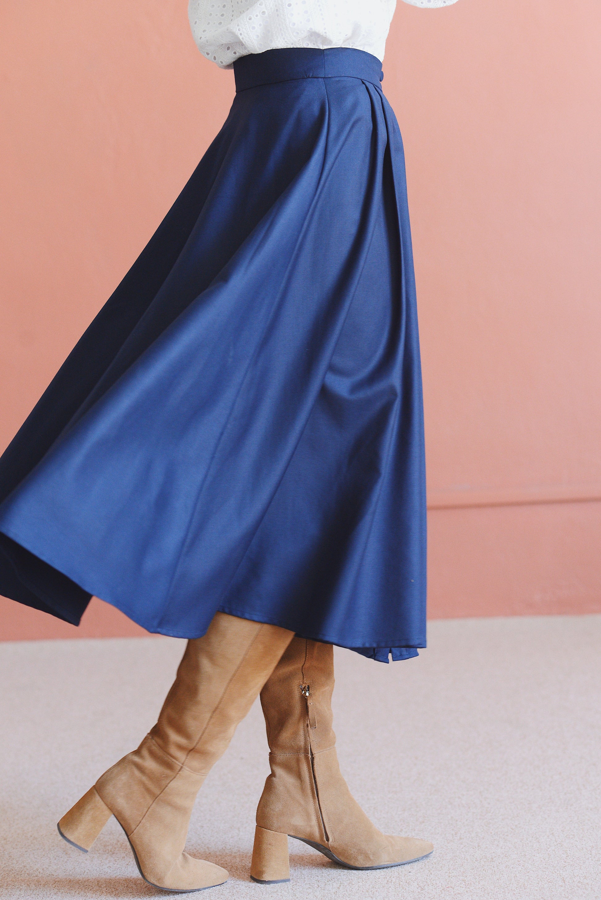 - Jupe midi bleue marine à cloche