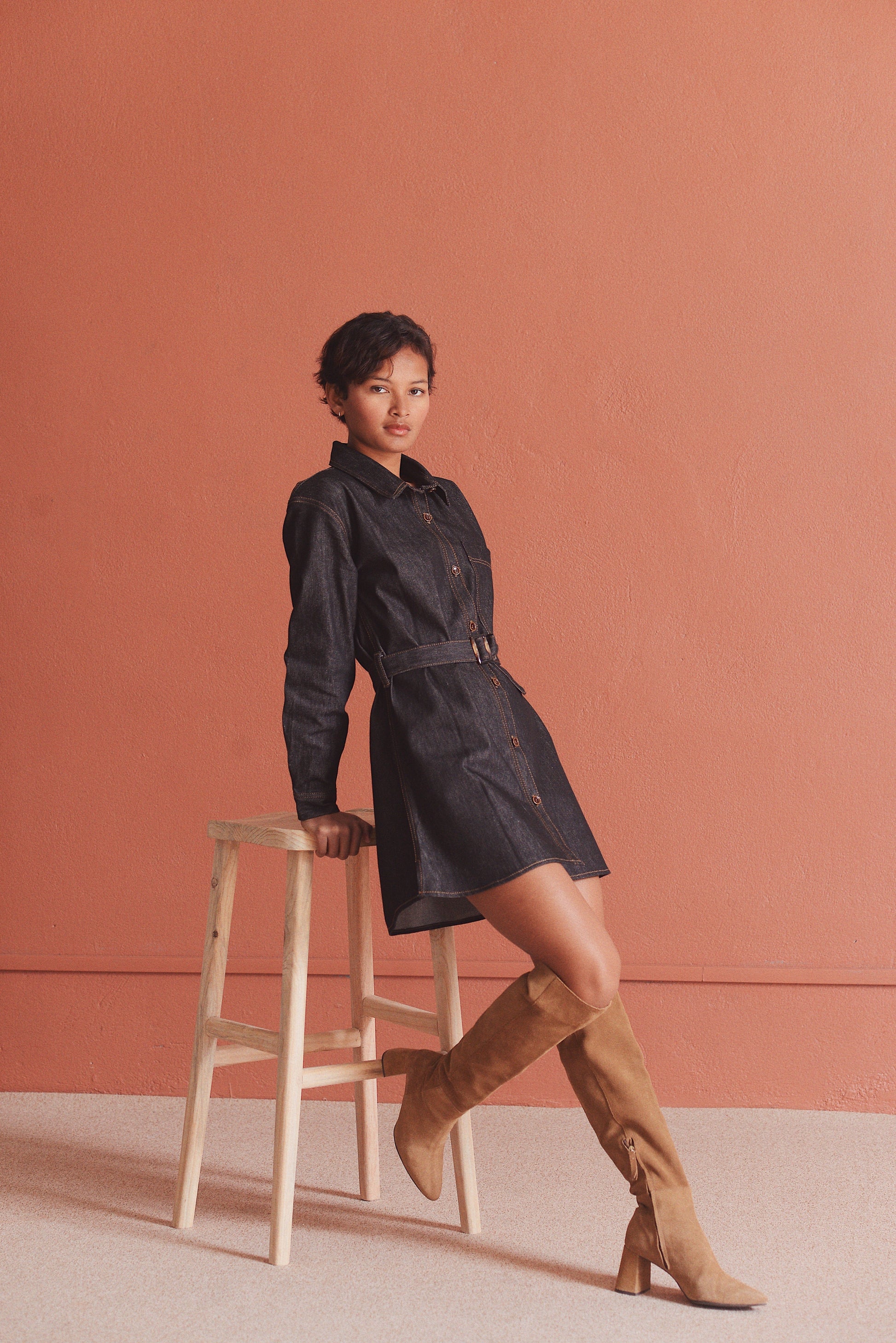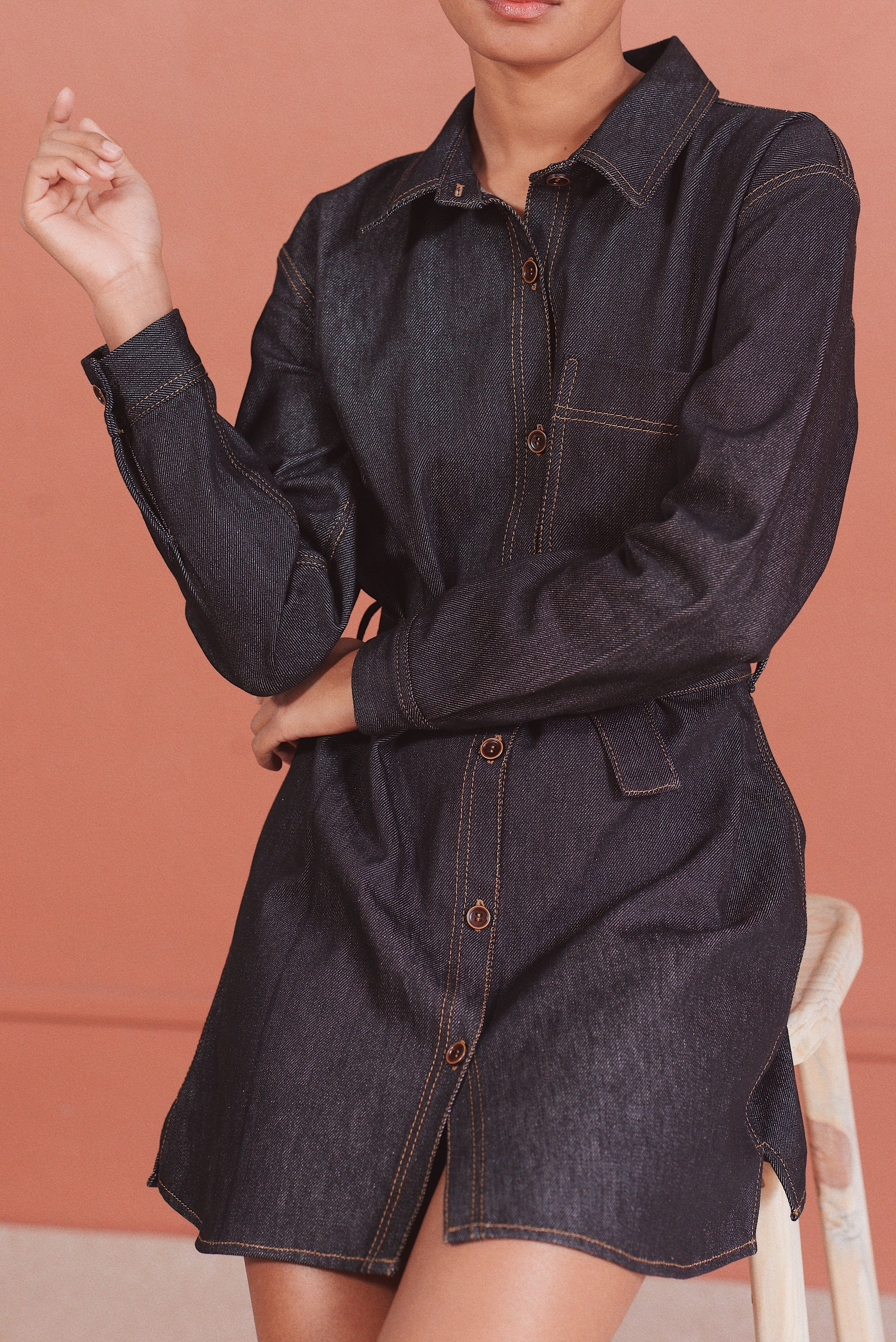 - Robe chemise courte en jean noir